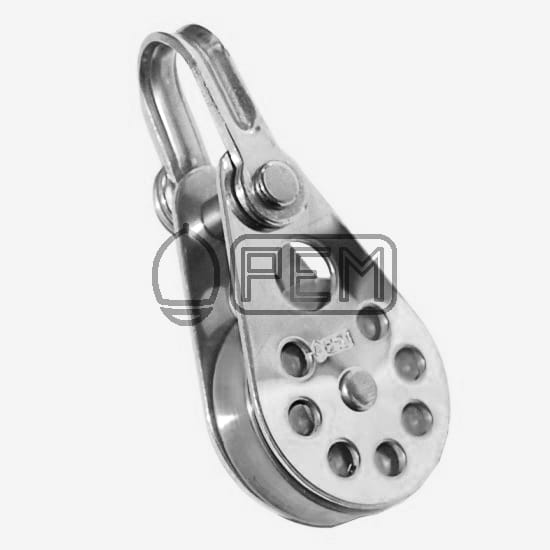 BLOK POJEDYNCZY NIERDZEWNY A2 Z ROLKĄ MOSIĘŻNĄ I UCHEM POLSKIEGO PRODUCENTA PEM.
