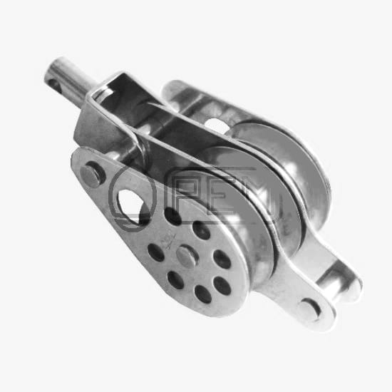 PEM 434M BLOK POTRÓJNY SZEREGOWY NIERDZEWNY A2 Z ROLKAMI MOSIĘŻNYMI KRĘTLIKIEM I ZACZEPEM BLOCZEK