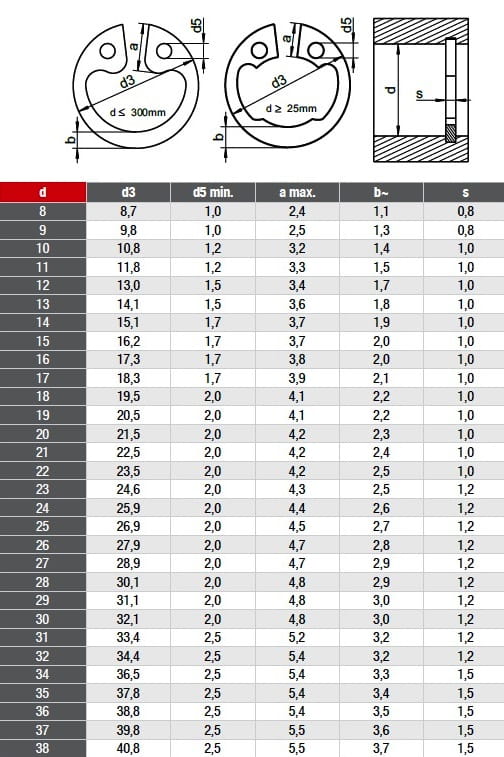 Pierścień osadczy SEGER WESNĘTRZNY DIN 472 - ROZMIAR JAK W TYTULE