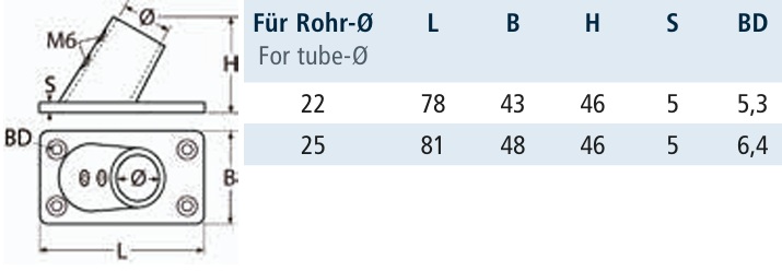 PODSTAWA SŁUPKA RELINGU 8204 60° PROSTOKĄT INOX A4 FI 22mm