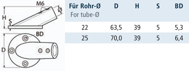 PODSTAWA SŁUPKA RELINGU 8325 30° POLEROWANA INOX A4 FI 22mm
