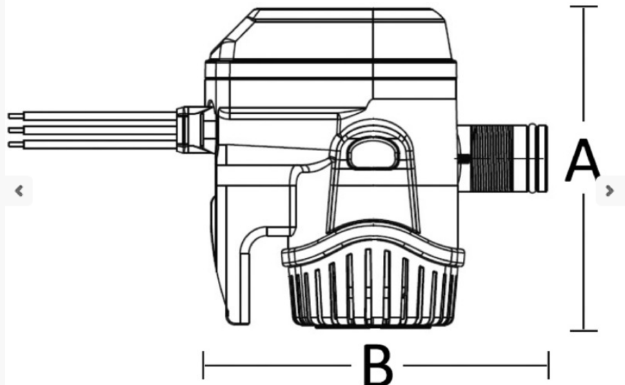 | Artykuł | Kod Rule | V | Wydajność l/min | Pobór prądu A | Wlot Ø mm | Wysokość A mm | Szerokość B mm |