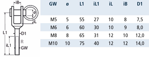 PRAWA KOŃCÓWKA 8455 WIDEŁKOWA KRÓTKA Z GWINTEM WEWNĘTRZNYM INOX A4 M10