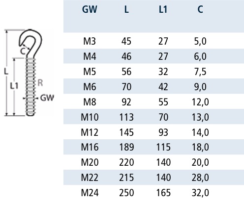 PRAWA ŚRUBA 8435 HAKOWA DO ŚCIĄGACZA INOX A4 M22