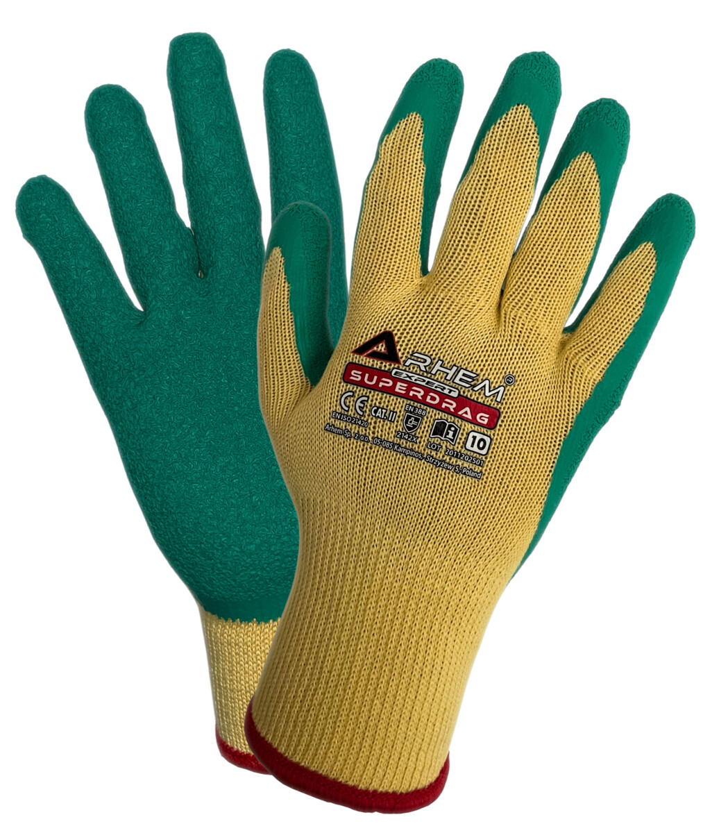 RĘKAWICE OCHRONNE POWLEKANE LATEKSEM SUPERDRAG (ZESTAW 12 PAR) ROZM. 9 , 10 , 11