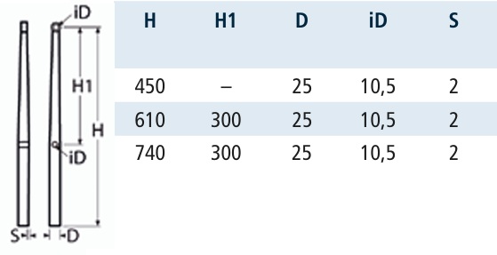 SŁUPEK RELINGU 8546 INOX A4 FI 25 mm WYS. 610 mm