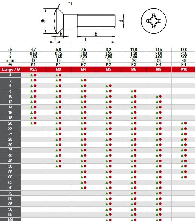 Śruba z łbem stożkowo-soczewkowym na KRZYŻAK - ROZMIAR JAK W TYTULE
