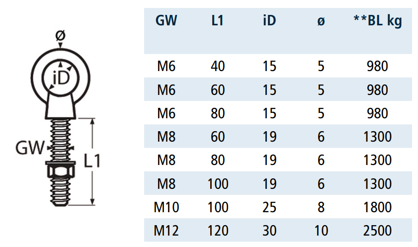 ŚRUBA OCZKOWA 8267 UCHO POKŁADOWE INOX A4 8X60