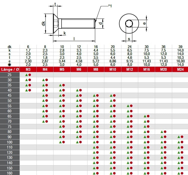 Śruba z łbem stożkowym NA IMBUS DIN 7991 - ROZMIAR JAK W TYTULE