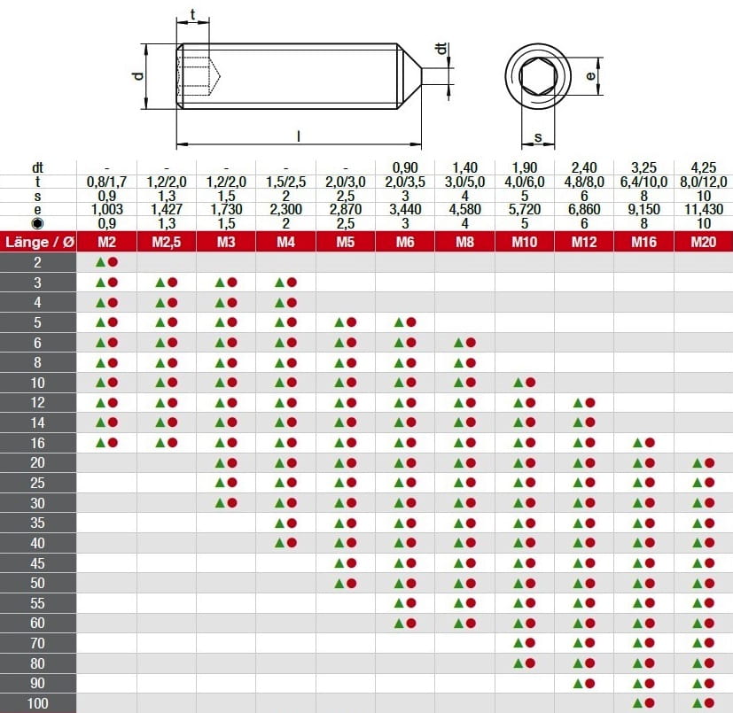 Śruba Wkręt dociskowy ustalający z gniazdem IMBUSOWYM I CZOŁEM STOŻKOWYM - ROZMIAR JAK W TYTULE