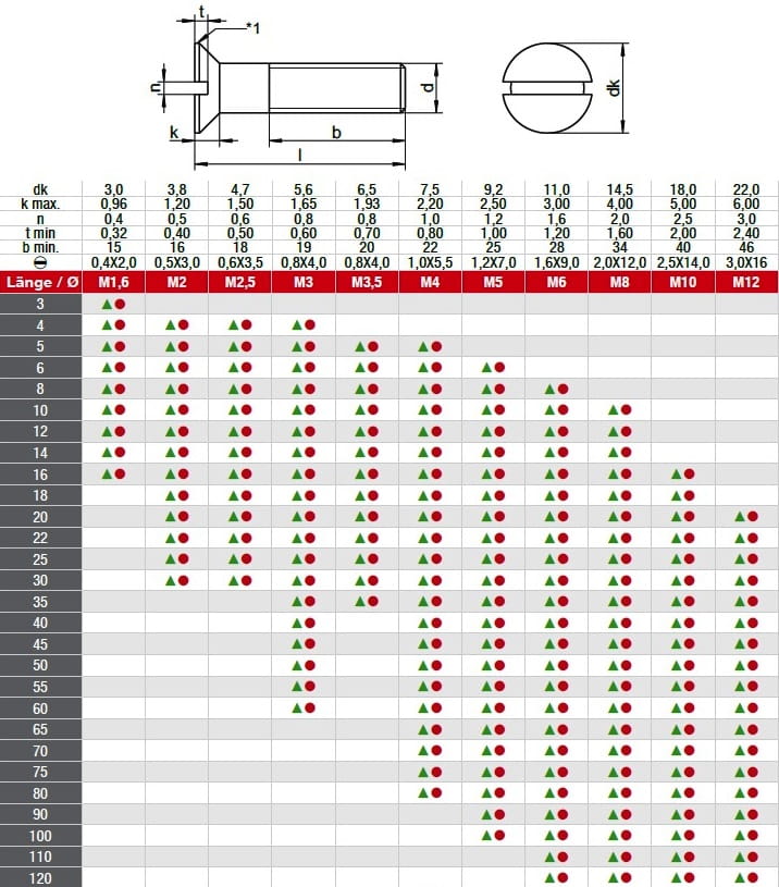 Śruba z łbem stożkowym i nacięciem prostym DIN 963 - ROZMIAR JAK W TYTULE