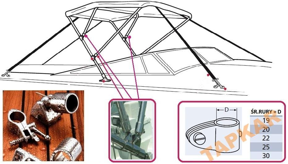 SUWAK OBEJMA RURY 25 MM NIERDZEWNA ZADASZENIE BIMINI