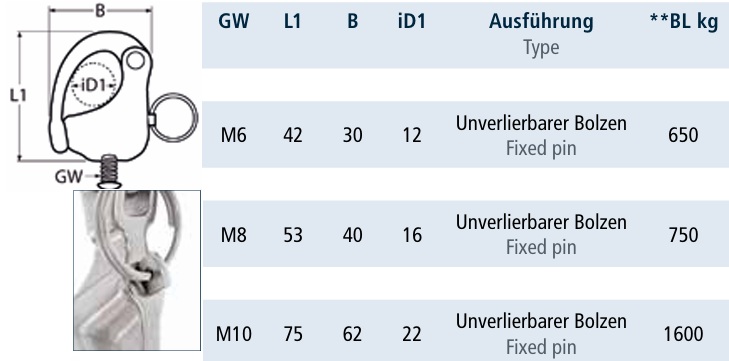 SNAPSZEKLA ZATRZASKOWA ZE ŚRUBĄ M6 I BLOKADĄ SWORZNIA W CAŁOŚCI WYKONANA ZE STALI KWASOODPORNEJ A4 - 316