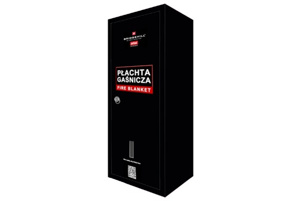 Szafka na płachtę gaśniczą, przeciwpożarową (koc gaśniczy) to rozwiązanie zaprojektowane do przechowywania płacht gaśniczych zarówno wewnątrz budynków jak i na zewnątrz. Pozwala na zabezpieczenie koca przed warunkami atmosferycznymi takimi jak deszcz, śnieg, słońce, który mogłyby skrócić jego żywotność. Pasuje do każdego koca gaśniczego. Znajdzie zastosowanie na stacjach benzynowych, stacjach ładowania, w magazynach, fabrykach, tunelach, a także na parkingach.