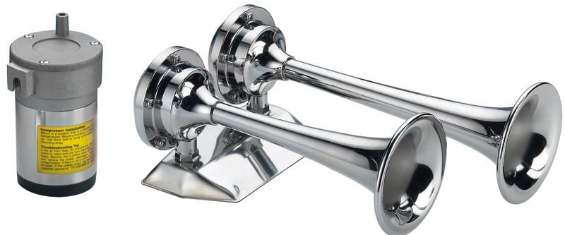 TRĄBKA SYGNAŁOWA 2SZT ZE SPRĘŻARKĄ Z CHROMOWANEGO MOSIĄDZU DO JEDNOSTEK O DŁUGOŚCI DO 20M 12V 2144312
