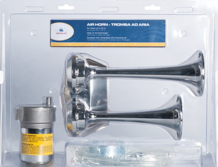 TRĄBKA SYGNAŁOWA 2SZT ZE SPRĘŻARKĄ Z CHROMOWANEGO MOSIĄDZU DO JEDNOSTEK O DŁUGOŚCI DO 20M 24V 2144324