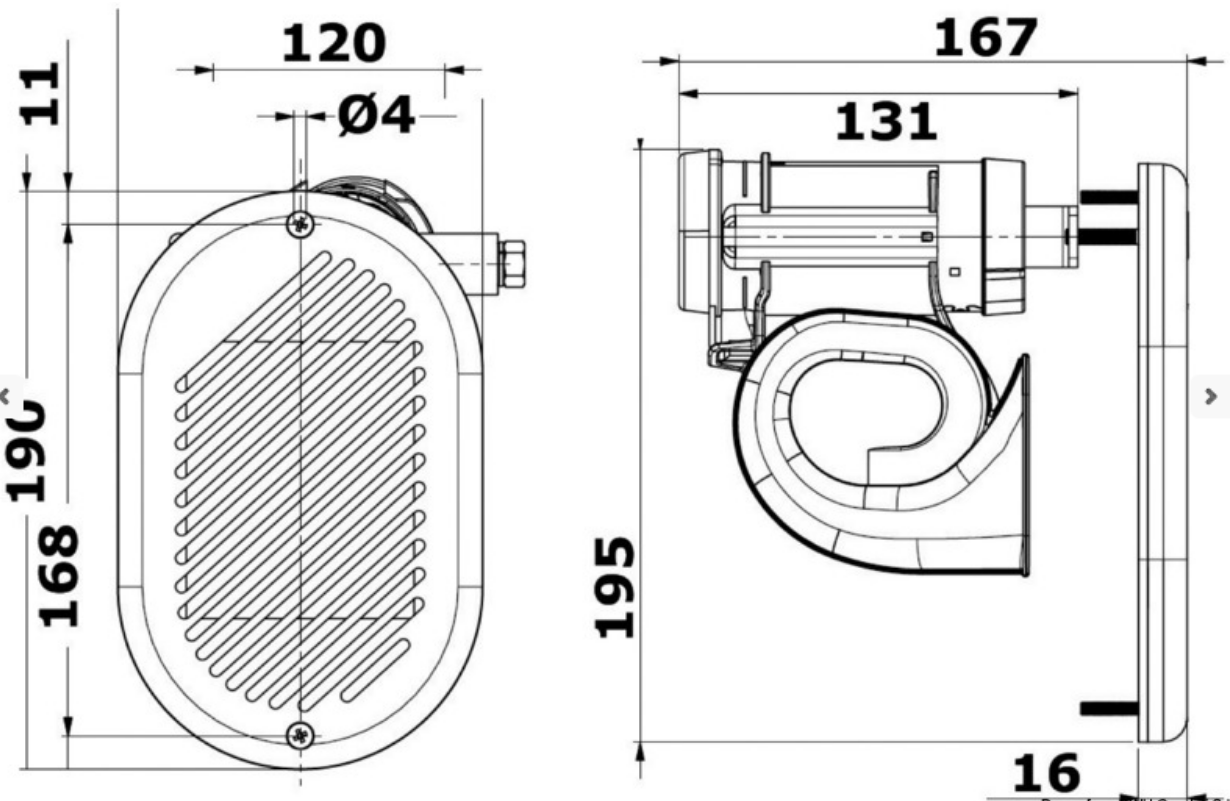 TRĄBKA SYGNAŁOWA PNEUMATYCZNA HURRICANE Z WBUDOWANĄ SPRĘŻARKĄ I POKRYWKĄ 12V CHROMOWANA 2145512