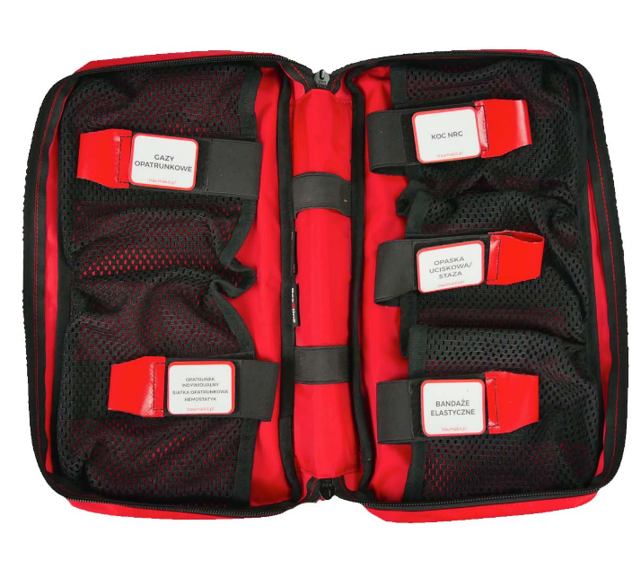 Saszetka pozwala na posegregowanie i idealnie ułożenie najdrobniejszego elementu. Całość wyposażenia będzie starannie opisana i oznaczona, dzięki czemu ratownicy mogą szybko znaleźć potrzebny sprzęt w czasie akcji. Narzepki umieszczone na kieszeniach wewnętrznych służą do opisania dokładnej ich zawartość, co pomaga utrzymać porządek oraz pozwala na jeszcze sprawniejsze działanie.