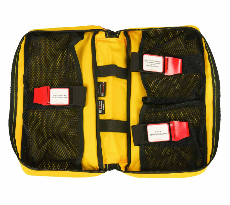 Saszetka pozwala na posegregowanie i idealnie ułożenie najdrobniejszego elementu. Całość wyposażenia będzie starannie opisana i oznaczona, dzięki czemu ratownicy mogą szybko znaleźć potrzebny sprzęt w czasie akcji. Narzepki umieszczone na kieszeniach wewnętrznych służą do opisania dokładnej ich zawartość, co pomaga utrzymać porządek oraz pozwala na jeszcze sprawniejsze działanie.
