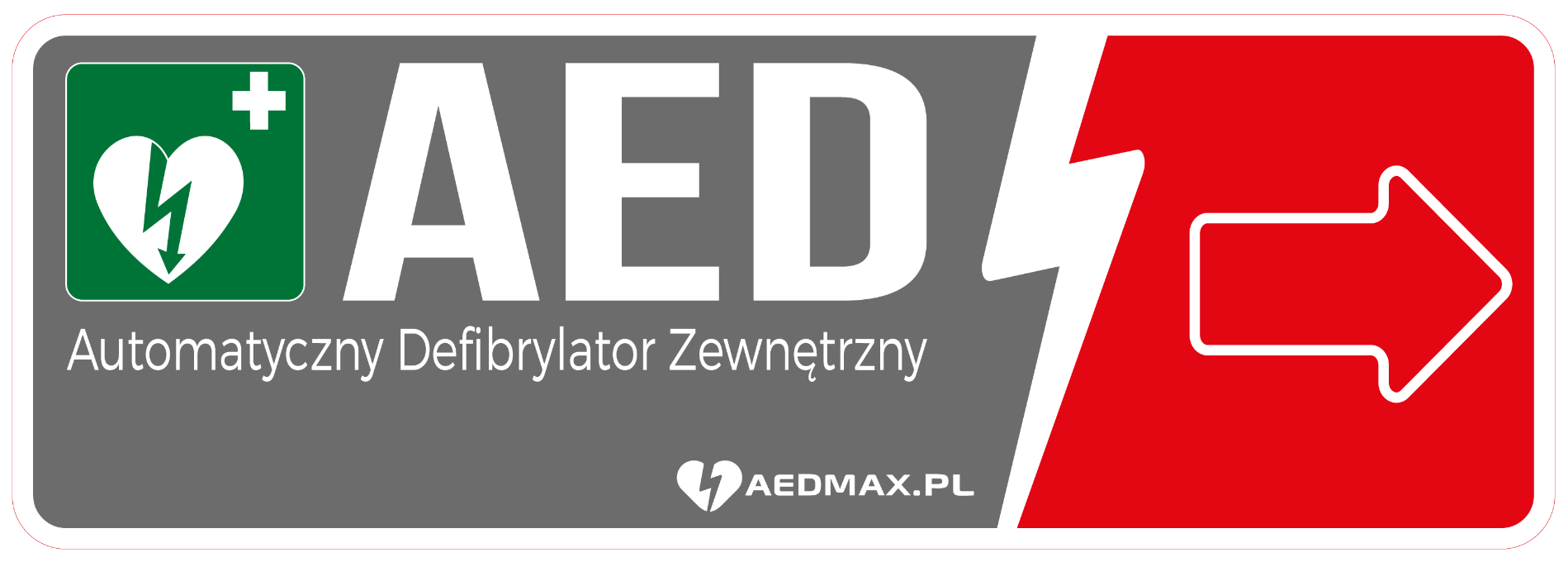 Prostokątna tabliczka informacyjna przeznaczona jest do umieszczania w pobliżu gabloty z AED. Umieszczona na niej strzałka wskazuje w jakim kierunku należy podążać aby dotrzeć do AED. Wykonana z PET o grubości 0,7 cm.
