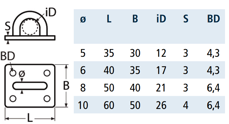 UCHO POKŁADOWE 8225 INOX A2 40X35 FI 6