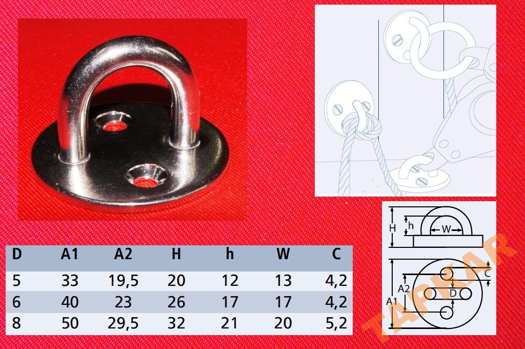 Ucho pokładowe M6 wykonane ze stali nierdzewnej A2.