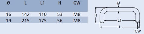 UCHWYT 814680 RĄCZKA POCHWYT Z GWINTEM M8 INOX A2 19X215