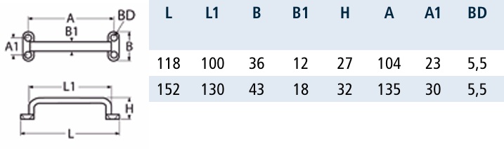 UCHWYT 8336 RĄCZKA POCHWYT INOX A2 MAŁY L = 118