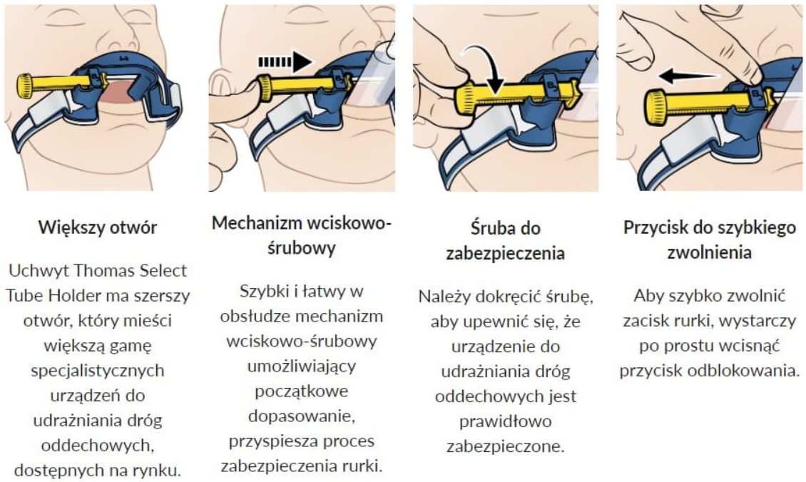 Uchwyt na rurki intubacyjne Thomas Tube Holder to niezawodne rozwiązanie z dwudziestoletnią tradycją jakośći i niezawodności. Jego celowo zaprojektowana konstrukcja minimalizuje ryzyko przypadkowej ekstubacji, dostarczając bezpieczeństwo i pewność podczas realizacji procedur medycznych. Został on stworzony z myślą o ułatwieniu i usprawnieniu mocowania rurki po jej wprowadzeniu do tchawicy, co przekłada się na większą efektywność i komfort dla personelu medycznego.