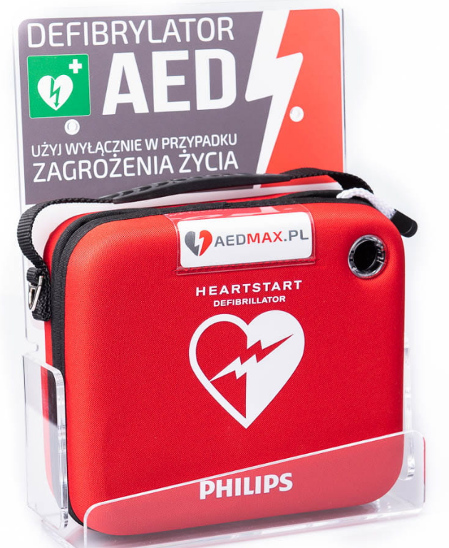 Uchwyt podtrzymuje defibrylator ale nie ogranicza do niego dostępu. Dzięki temu można maksymalnie szybko dostarczyć AED do poszkodowanego.