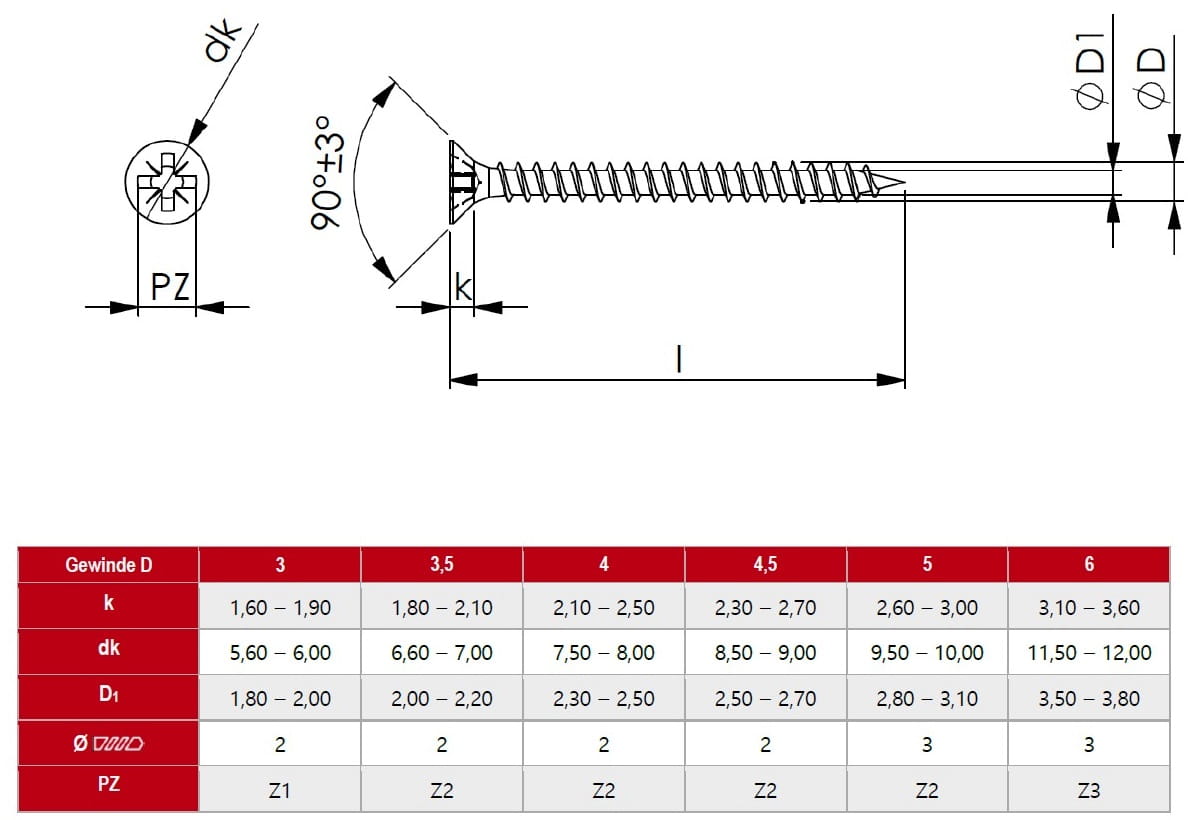 Wkręt do drewna 9100 stożkowo-płaski - ROZMIAR JAK W TYTULE