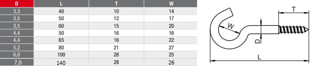 Wkręt hakowy otwarty do drewna w całości wykonany ze stali nierdzewnej A2