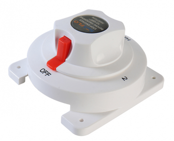Przełącznik, selektor baterii 4-pozycyjny. Zastosowanie w łodziach i jachtach.