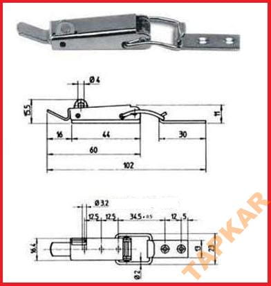 Zatrzask w całości wykonany ze stali nierdzewnej A2-304 z uchem na kłódkę.