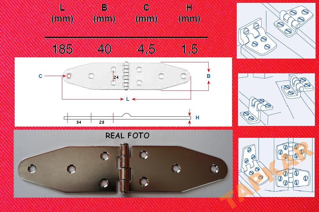 ZAWIAS 8048 NIERDZEWNY 185X40X1,5 KWASOODPORNY