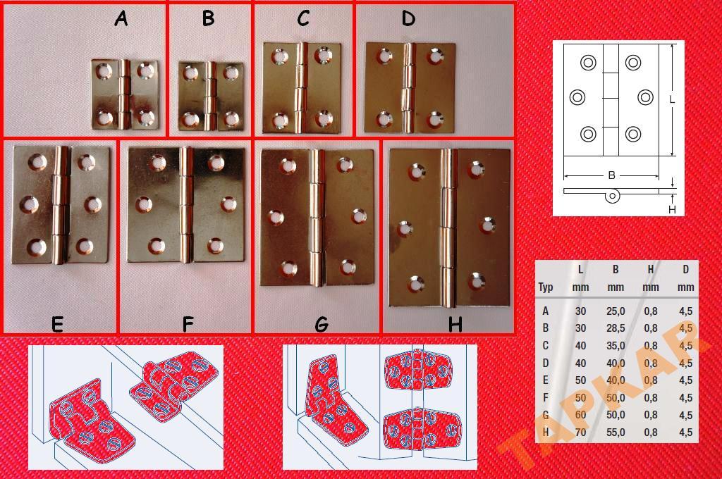 Zawias symetryczny równoramienny z prostymi skrzydełkami.