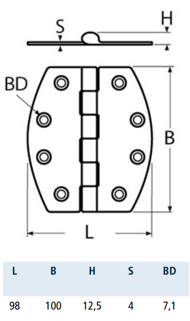 ZAWIAS SYMETRYCZNY 815083 INOX A4 98X100