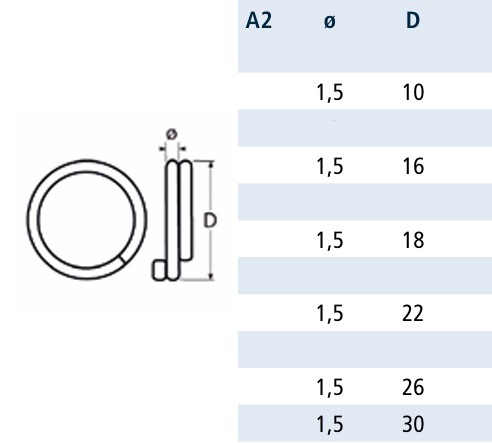 Zawleczka okrągła A2 wykonana drutu o grubości 1,5 mm.