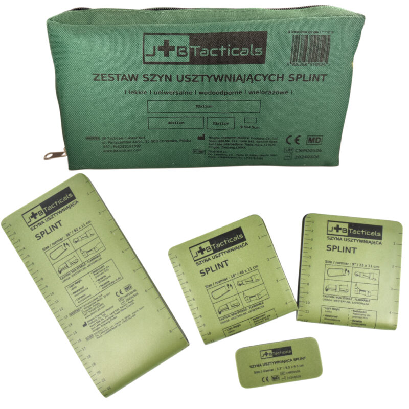Zestaw sprawdzi się w sytuacjach awaryjnych, w medycynie taktycznej i w terenie. Umożliwia szybkie unieruchomienie złamań i stabilizację kończyn – zarówno w środowisku miejskim, jak i podczas działań polowych. Idealny jako element wyposażenia apteczki IFAK, plecaka ratunkowego lub torby taktycznej.